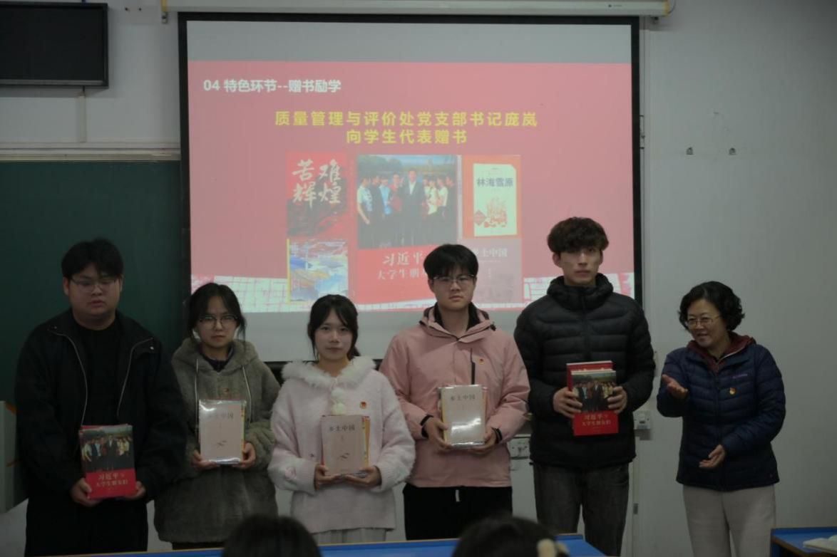 活动期间,庞岚向学生团支部代表赠送《习近平与大学生朋友们》《苦难辉煌》等书籍,寄语青年坚定理想信念、勤学笃行实干、主动服务大局,在“十五五”建设中锤炼成长、建功立业。学生代表李越表示将珍惜学习机会,带领团支部同学深耕专业知识,把理论学习与专业实践结合起来,以实际行动践行青春誓言,不辜负组织的期望。